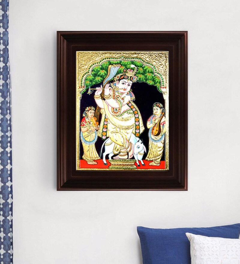 Buy Multicolour Gold Plated Krishna Playing Flute Framed Tanjore